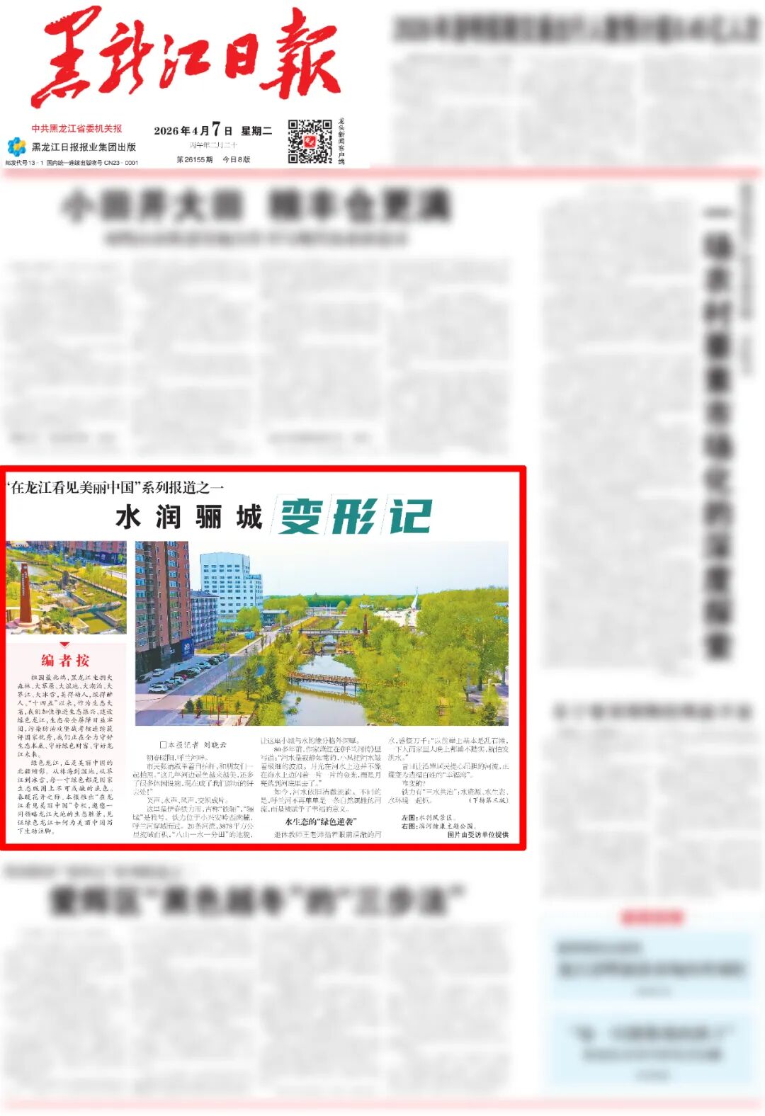 绿色龙江,正是美丽中国的北疆缩影。从林海到湿地,从界江到冰雪,每一寸绿色都是国家生态版图上不可或缺的底色。春暖花开之际,本报推出“在龙江看见美丽中国”专栏,邀您一同领略龙江大地的生态胜景,见证绿色龙江如何为美丽中国写下生动注脚。