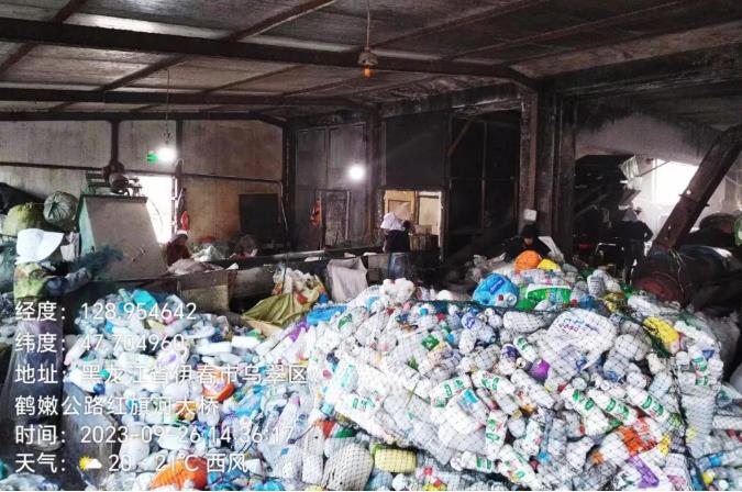 2023年7月20日,鹤岗市生态环境局接到公安机关线索称,宝泉岭24队一院内有刺鼻气味,可能存在环境污染情况。执法人员联合垦区公安局宝泉岭分局立即前往现场开展联合调查,经调查发现院内有少量遗撒的红色不明固体废物和多个包装袋,包装袋上写有联苯、2,5二氯对二甲酸、军工蓝、枣红等字样,并在现场发现有一处黑色水坑,气味刺鼻难闻。