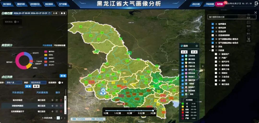 据悉,重点区域点位画像平台创新性整合了空气质量自动监测与预报、重点区域点位周边污染源信息、排污许可证信息,重点涉气企业在线监测数据、实时气象数据、基础地理和