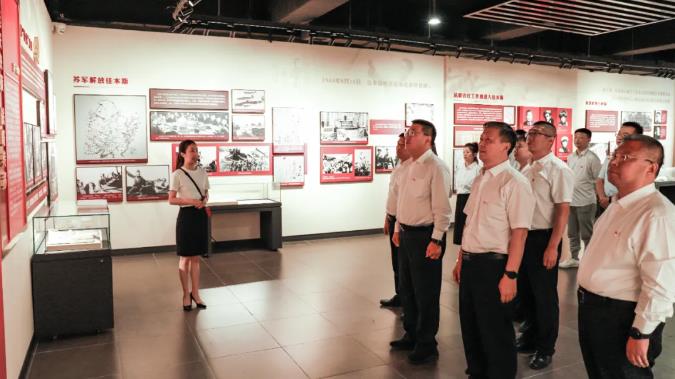 在合江省政府旧址博物馆,督察组全体党员干部先后参观了延安决策战略转移、东北革命文化的摇篮、辉煌的新闻出版事业、新中国电影事业的摇篮等10个展区,从千余件红色文物、历史图片、实物见证,回望延安文化大军的到来给沉睡千年的黑土地带来的空前文化繁荣,了解当年轰轰烈烈的土地改革、发展生产、支援前线等波澜壮阔的历史故事。大家不时驻足凝望,深刻感悟脚下这片热土所历经的峥嵘岁月、承载的信仰信念。