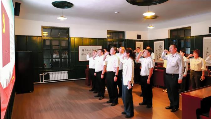 参观结束后,督察组全体党员干部面对鲜红的党旗重温入党誓词,誓言铿锵有力、掷地有声。