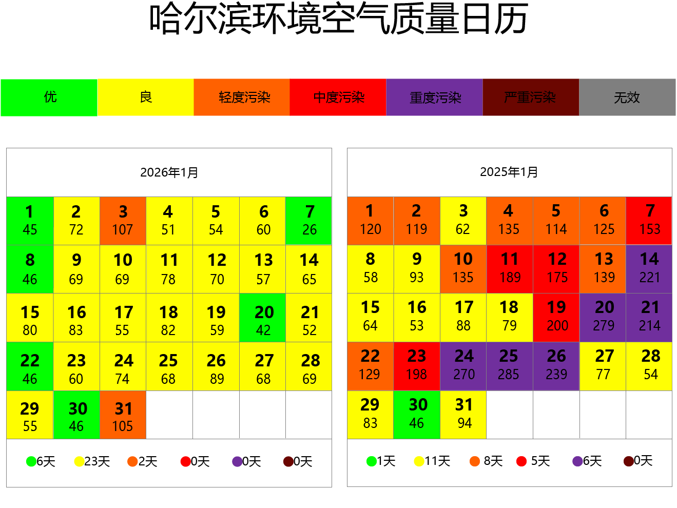 二、省会城市哈尔滨环境空气质量日历